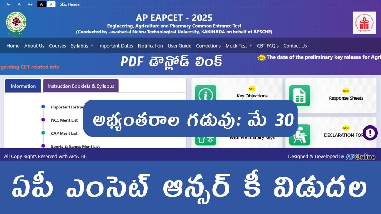 📥 AP EAMCET Answer Key 2025 PDF లింక్